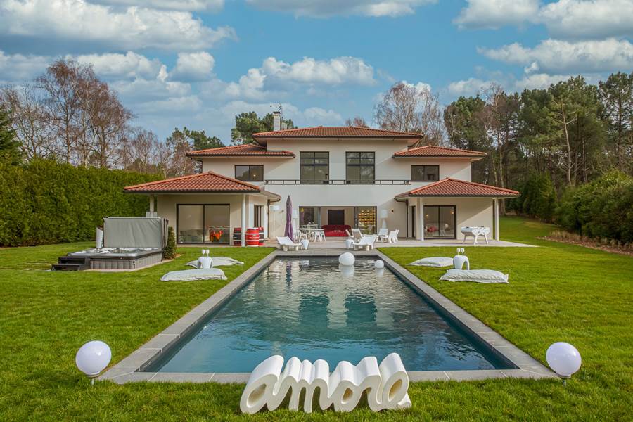 Villa contemporaine de 350m², jardin avec piscine chauffée et jacuzzi… Location de luxe saisonnière au coeur de la belle forêt du Touquet-Paris-Plage. HOUSE ZYX, Bulle de verre et blanc immaculé, qui fait corps avec la nature.